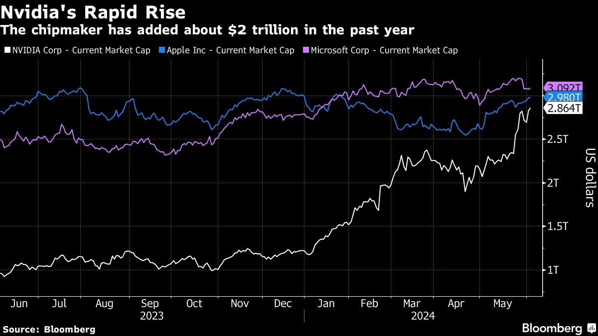 “비슷한 가치 평가를 위해 Nvidia를 통해 훨씬 더 큰 성장을 이루고 있습니다.”라고 그는 말했습니다. “메가캡 회사에서는 그런 종류의 근본적인 성장을 위한 경쟁이 없습니다.” Nvidia의 주식을 다루는 Bloomberg의 추적 분석가 72명 중 65명은 매수로 평가했으며 누구도 매도로 평가하지 않았습니다.