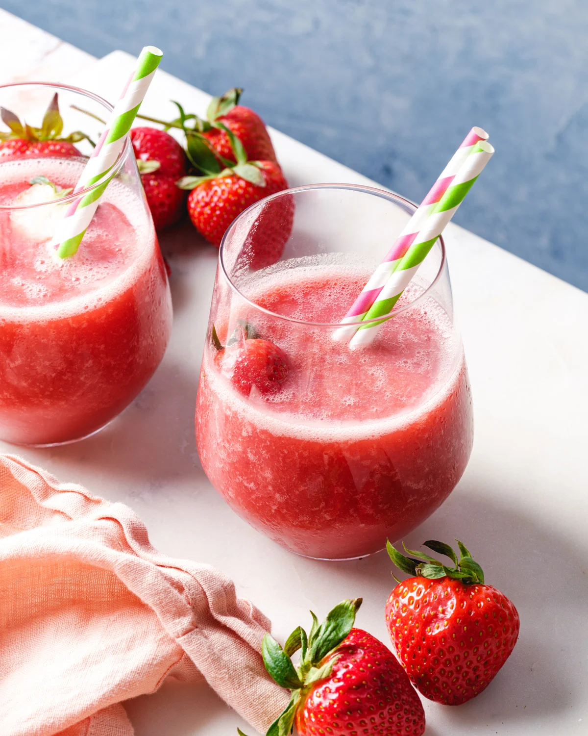 딸기 슬러시에는 달콤하고 시원한 맛을 내는 재료 몇 가지만 필요할 뿐입니다! 파티나 아이들 간식으로 완벽한 여름 음료입니다.