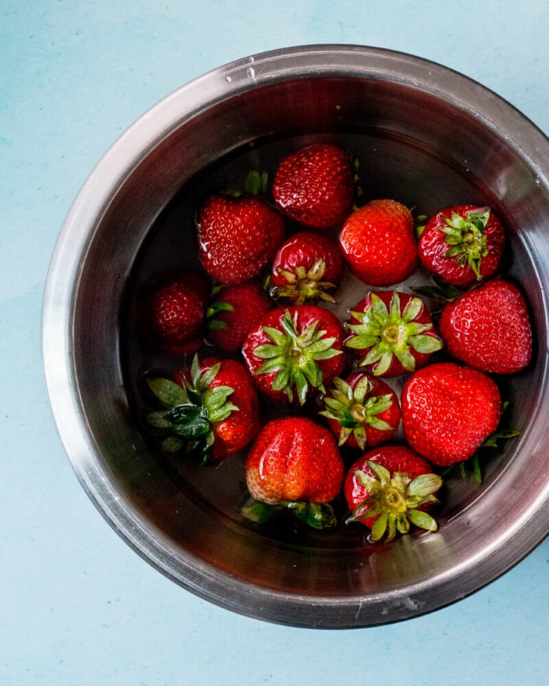 1단계: 딸기를 씻어줍니다.