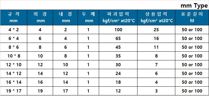 큰 사이즈 테프론 튜브