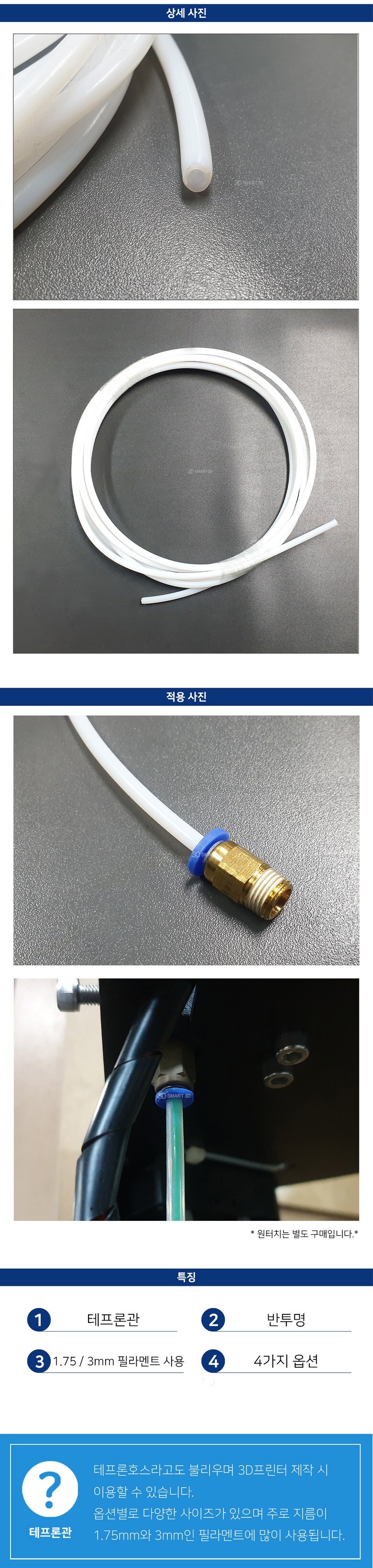 실험장비 실험기기 테프론호스 테프론튜브 PTFE 3D프린터