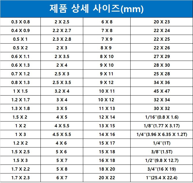 (내경*외경) 규격 외 사이즈 제작 가능합니다.