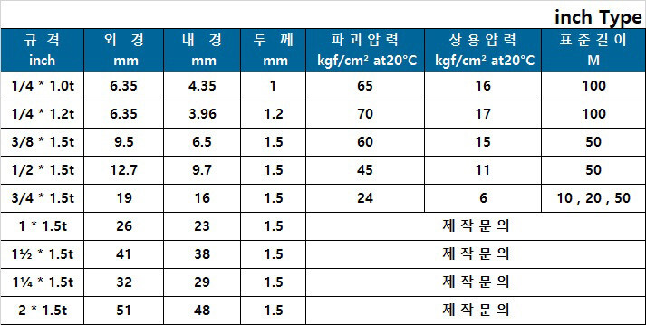 파괴압력 및 상용압력