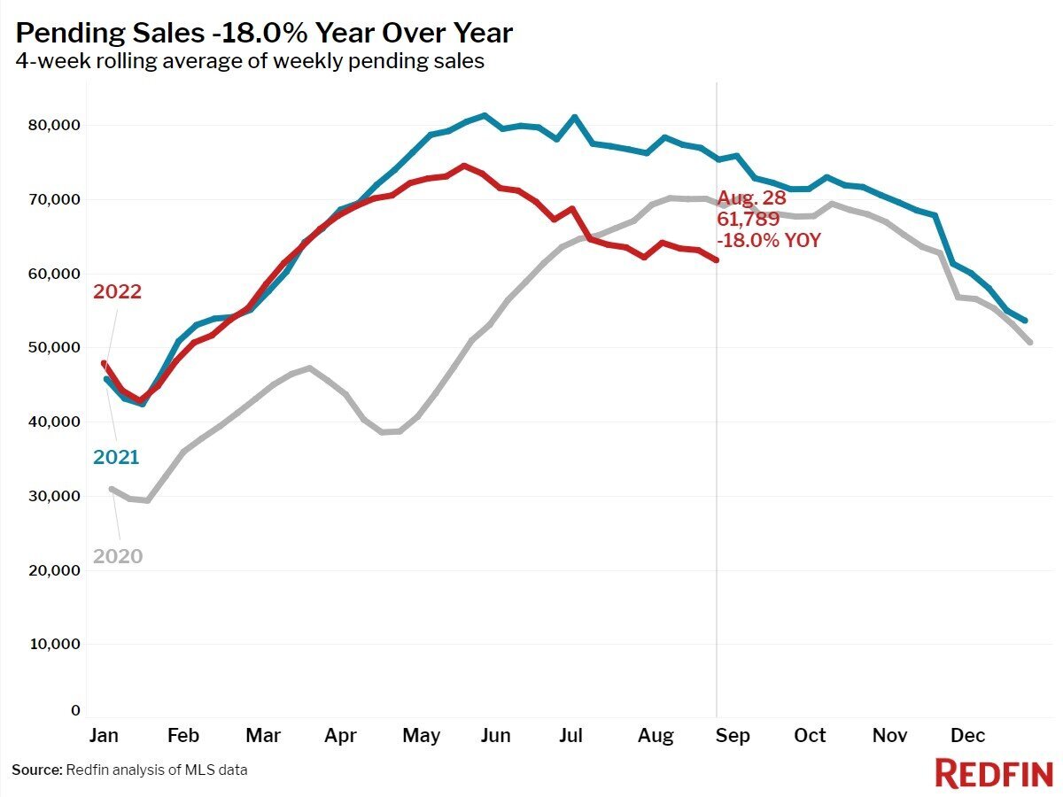 - 보류 중인 주택 판매는 전년 대비 18% 감소했습니다.