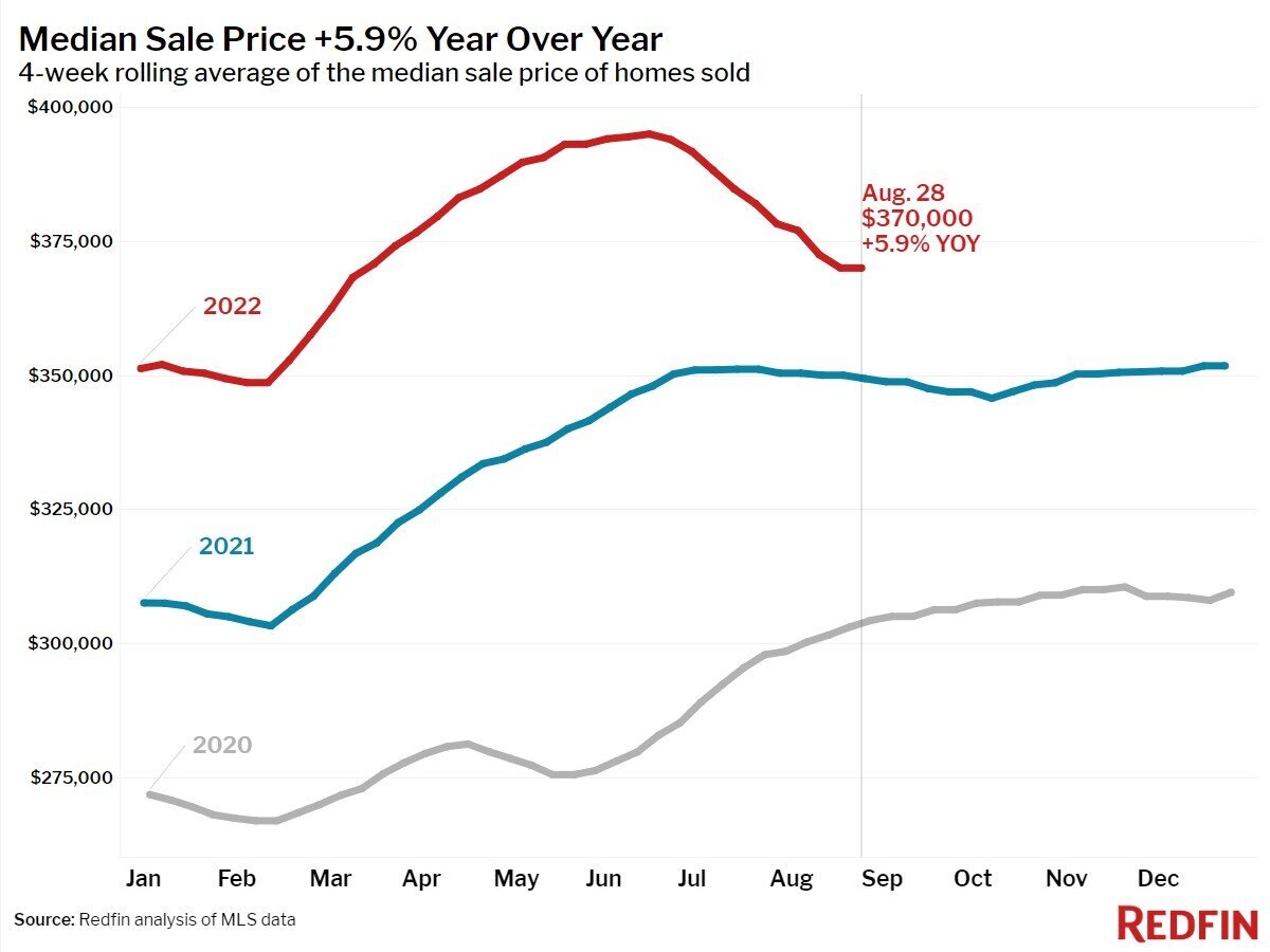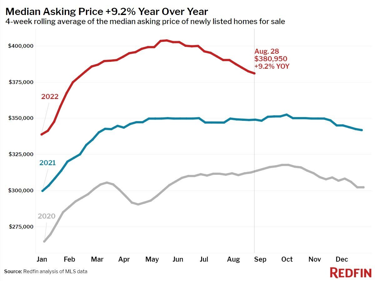 국영 부동산 중개인 Redfin에 따르면 주택 시장 쿨다운이 계속되면서 주택이 8월 28일까지 4주 기간 동안 17개월 만에 처음으로 정가보다 낮은 가격에 팔린 것으로 나타났습니다.